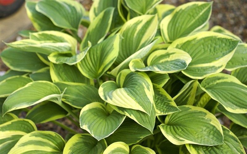 Хоста Форчуна 'Аureomarginata' – это великолепное многолетнее растение, которое станет настоящим украшением вашего сада. Этот сорт хосты отличается крупными, сердцевидными листьями с ярко-зелёной серединой и золотисто-жёлтой каймой по краям, создавая эффектный контраст и привлекая внимание.
