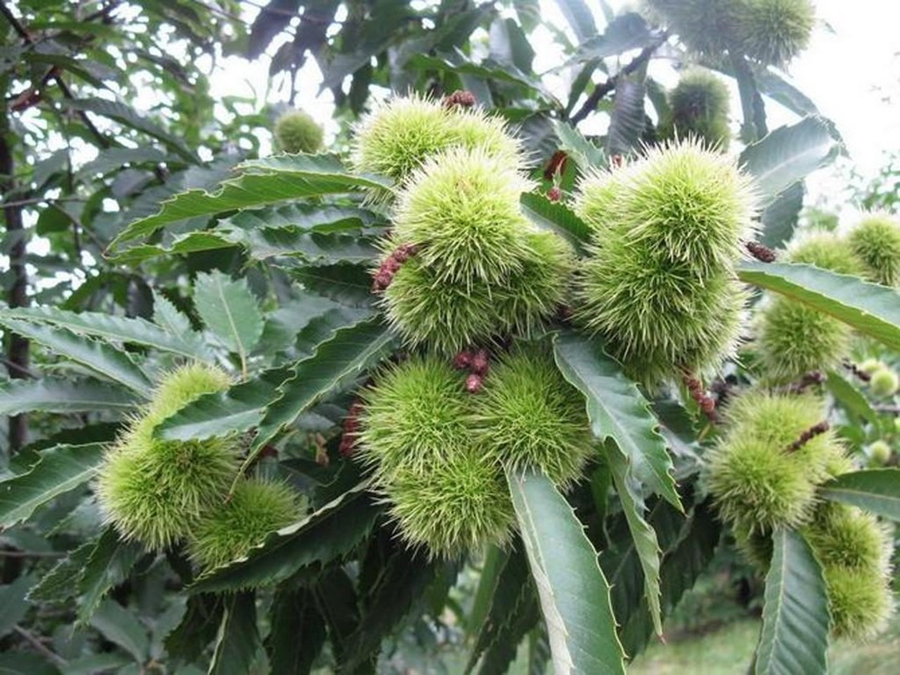 - Плоды: съедобные, созревают в сентябре-октябре, заключены в колючую оболочку