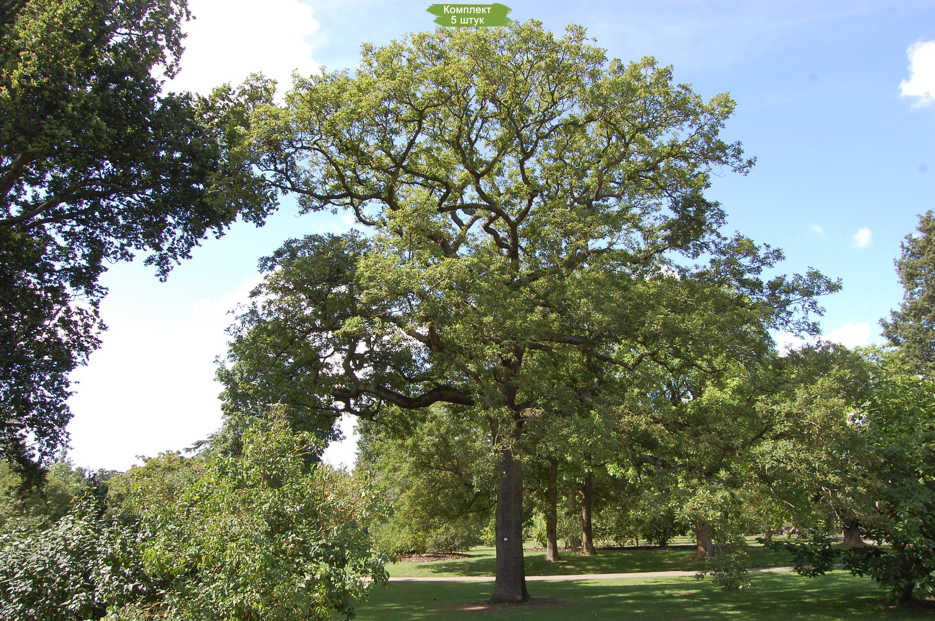 В комплекте поставляется 5 саженцев, что позволяет вам сразу создать гармоничную композицию на вашем участке. Выбирайте качество и надежность с нашими саженцами дуба Каштанолистного!