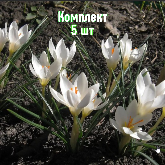Луковицы крокуса Miss Vain (5 шт.) — выгодный набор для ранней весны. Белоснежные звёздочки бутонов с солнечно-жёлтой серединкой и тонким ароматом. Цветение в марте–апреле, около 6–8 дней, создаёт яркие акценты в саду.