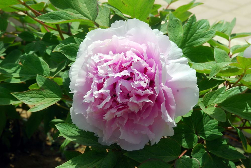 Пион древовидный "Charming Sights after Rain" – это изысканное украшение для вашего сада. Этот сорт привлекает внимание своими крупными, махровыми цветами, которые распускаются в нежных оттенках розового и белого, создавая эффект утренней свежести после дождя.